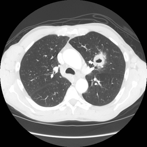 The differential for cavitating lung mass is wide, including neoplasms such as non-small cell lung cancer (NSCLC), lung metastases, lung abscess, mycobacterial pneumonia, fungal pneumonia, and septic pulmonary emboli. This patient underwent bronchoscopy which turned out to be negative for infection. The final diagnosis was cavitary pulmonary lymphoma, which is a rare manifestation of lymphoma.