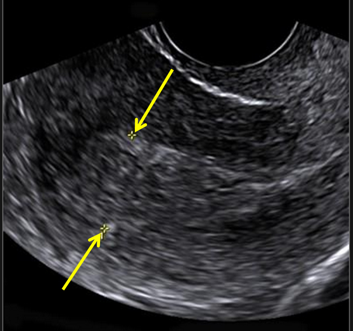History: 35 year old female with vaginal bleeding after 1st trimester miscarriage.